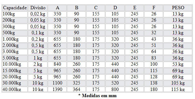 Obs: Nas Balanças Suspensas com capacidade de 100kg a 500kg acompanham bateria com autonomia de até 30 horas e não possui Controle Remoto de Tara..