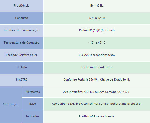 • A estrutura de pesagem é construída de chapa de aço carbono SAE 1020, com acabamento em tinta primer poliuretano. Projetada e otimizada com tecnologia computadorizada, suportando cargas até 30% acima da carga máxima permitida.