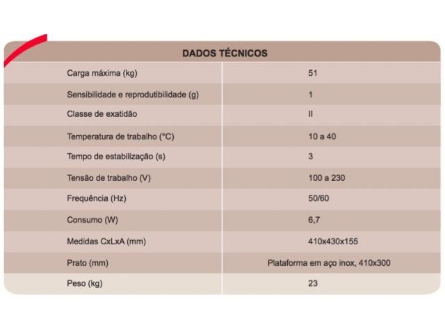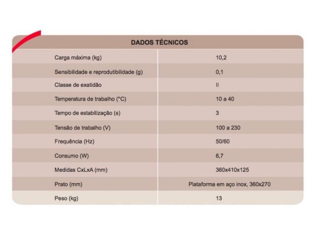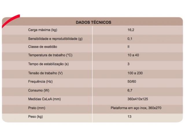 Display digital de cristal líquido (LCD) com 8 dígitos de 7 segmentos que facilita a leitura pelo usuário e indicador de estabilidade de leitura e de capacidade já utilizada.