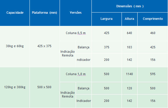 A mais versátil linha de balanças de bancada de 30 a 300 kg.